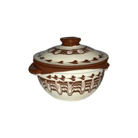 Podnitsa /deep earthen baking dish/ on metal stand D25 cm
