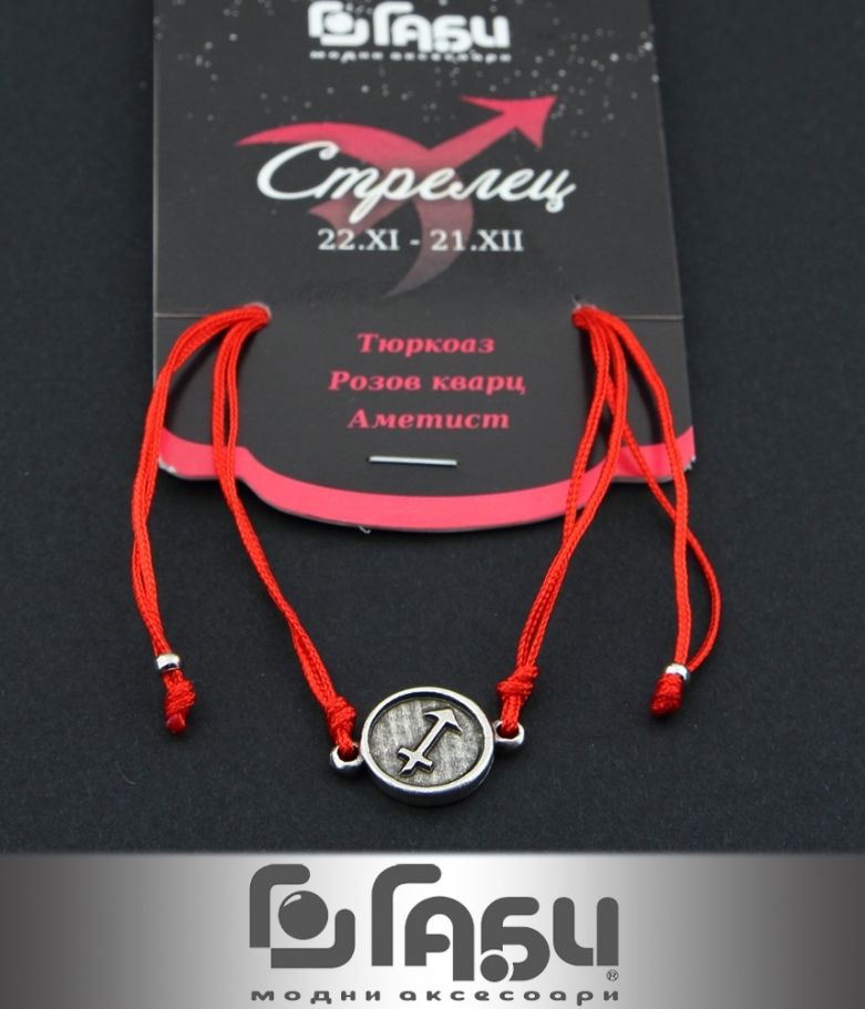 Zodiac set of bracelets, each one with a plate depicting twelve zodiac symbols respectively. Every bracelet is of synthetic thread and Shambala-type knitting stitch. The element is of anti-allergic metal, nickel-free.