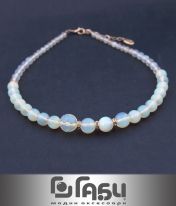 Necklace of natural pearls and sunny aventurine on metal thread. Anti-allergic metal clasp, nickel-free.