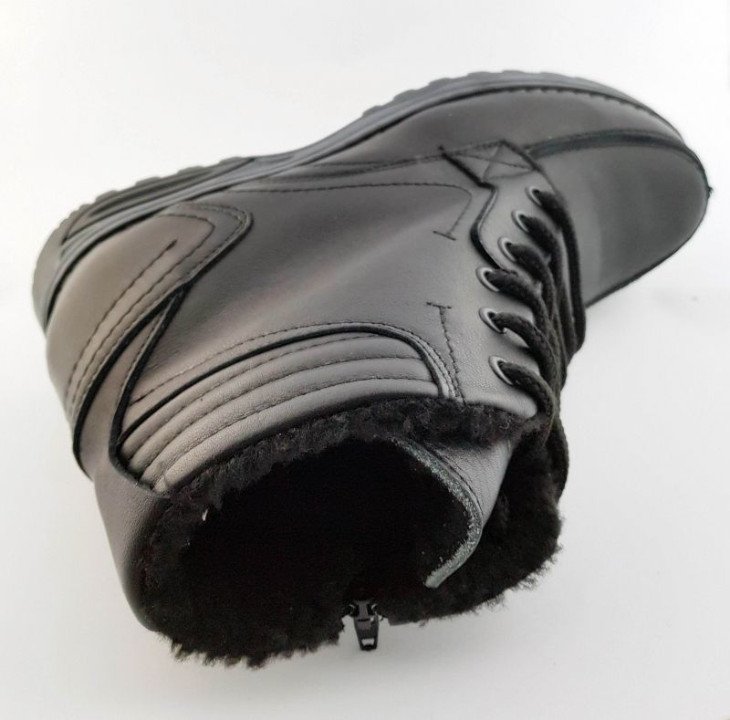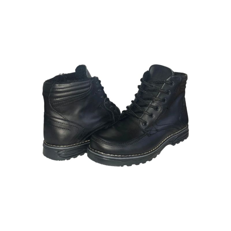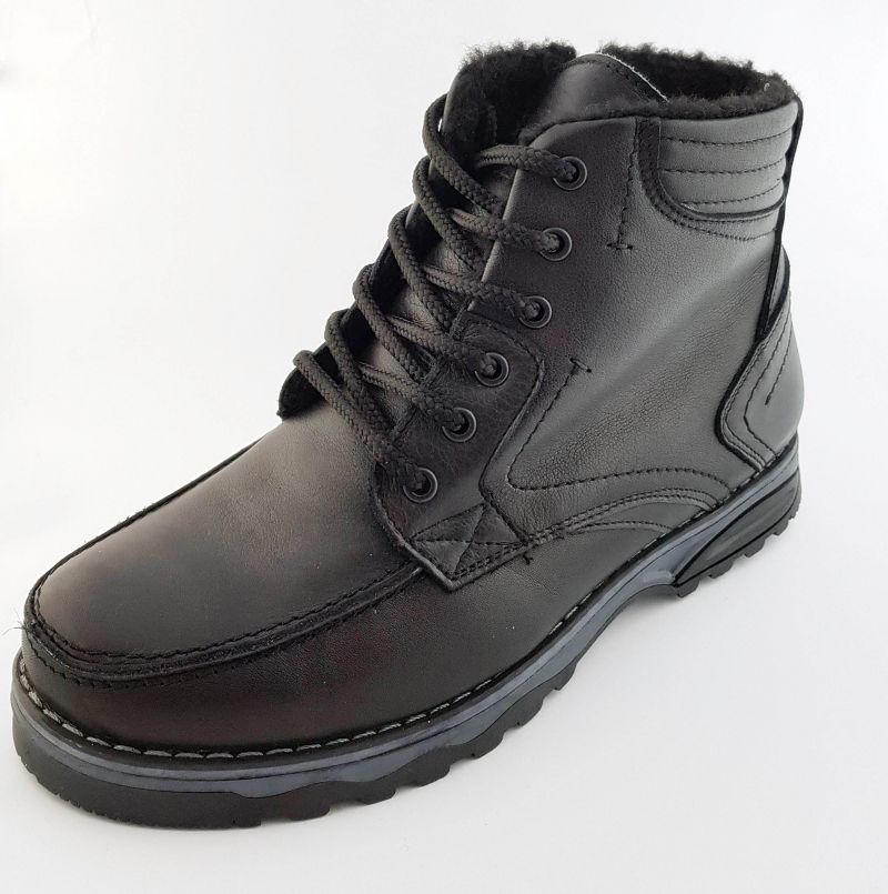 Men’s winter boots. Steady grip pattern sole for stability on iced surfaces. Elegant style in black. High quality genuine leather. Soft and warm lining