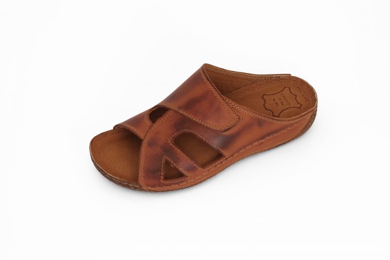 Women’s slippers and lining of brown genuine leather with decorative elements. Ideal for hot summer days.