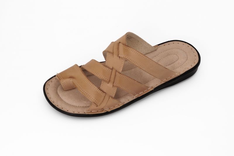 Men’s brown slippers and lining of genuine leather. Ideal for hot summer days.
