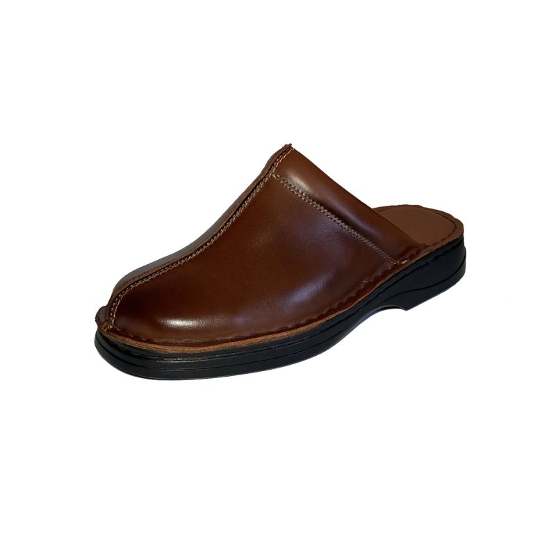 Men’s brown slippers and lining of genuine leather. Ideal for hot summer days.