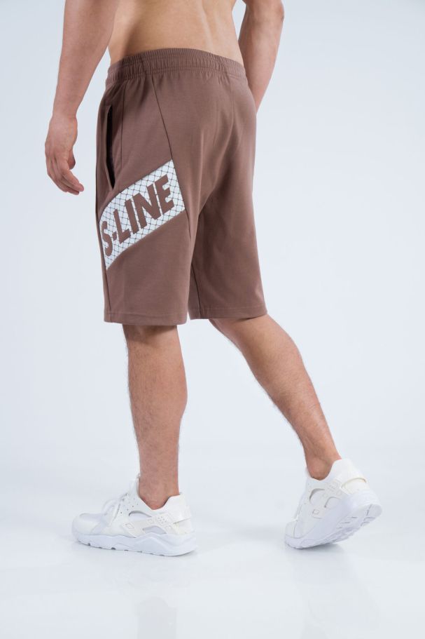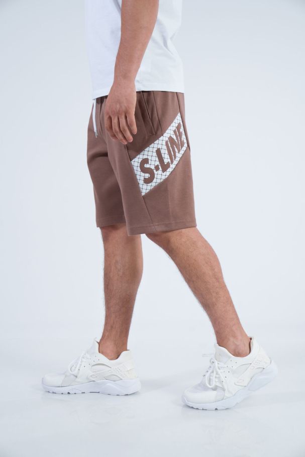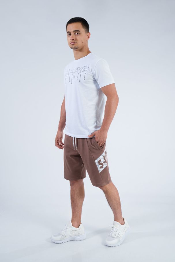 Мъжки къси панталони с лого и щампа в бяло отстрани.