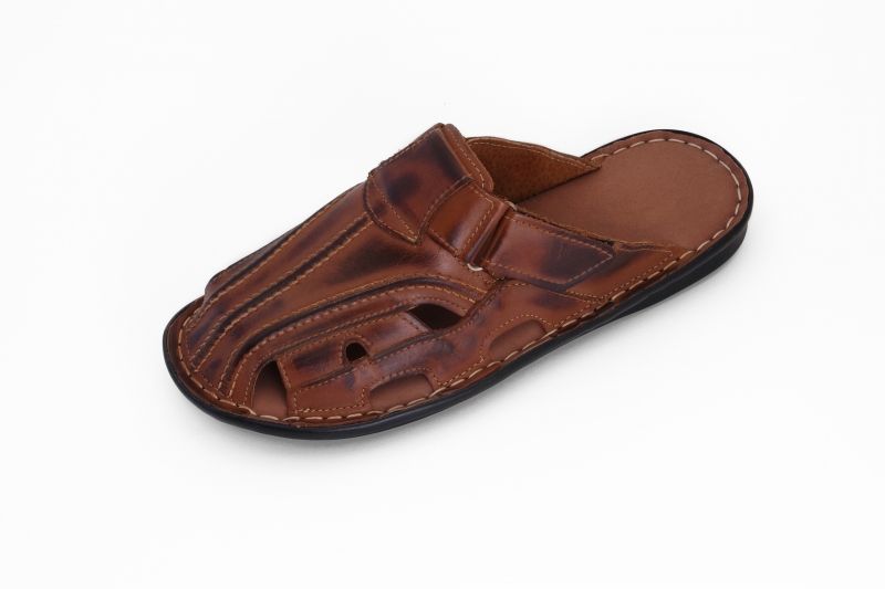 Кафяви мъжки чехли, изработени от качествена естествена кожа.