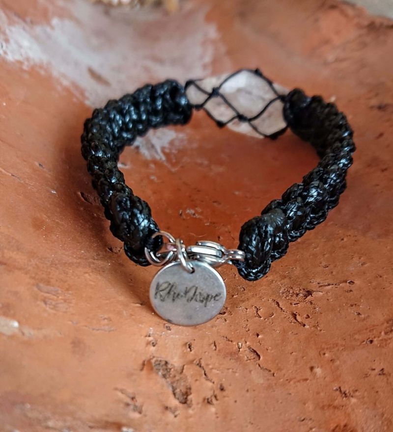 Ръчно изработена гривна с родопски планински кристал изработена от планински кристал , памучен шнур и стомана.