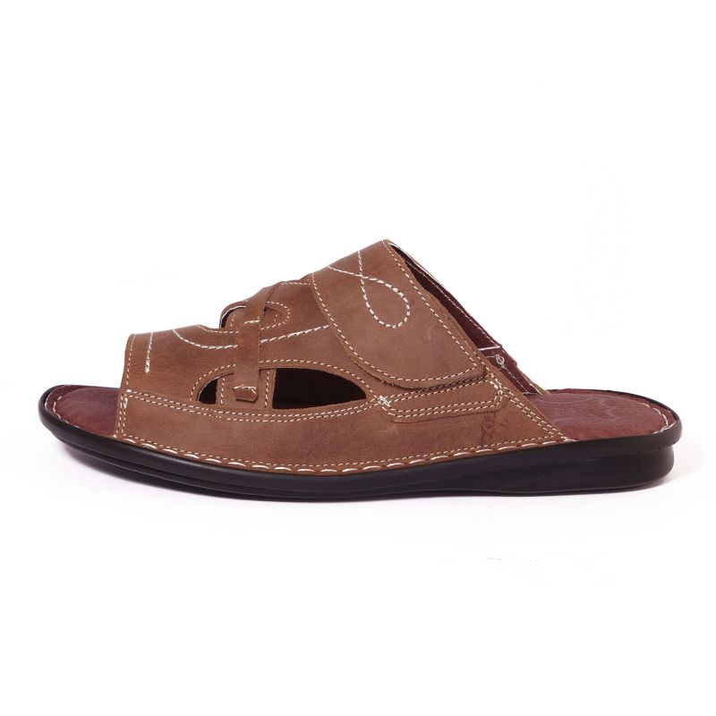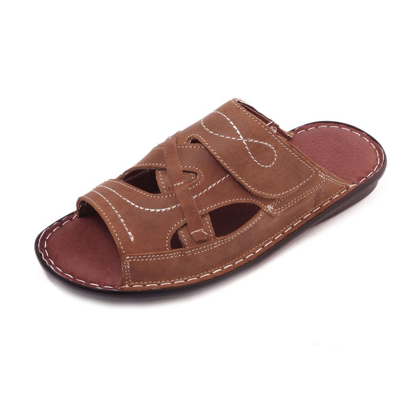 Кафяви мъжки чехли, изработени са от естествена кожа.