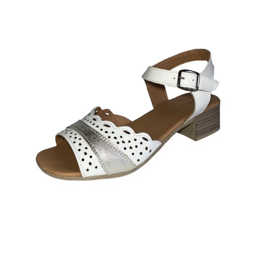 Дамски сандали в бяло и сребро.