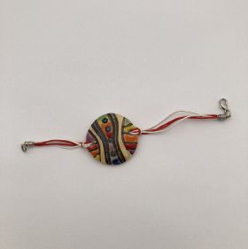 Hand-made woollen martenitsa. Knitting stitch in colours. Wrist decoration. For ladies.