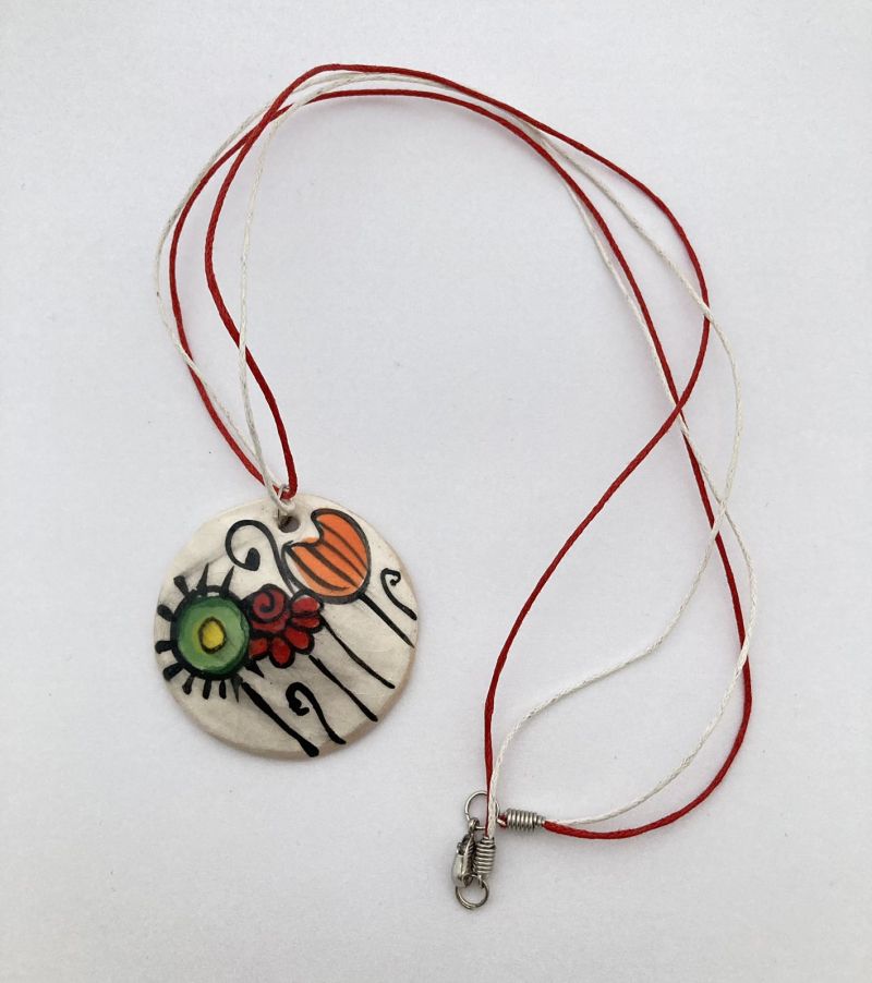 Ръчно изработена рисувана керамична мартеница - колие.