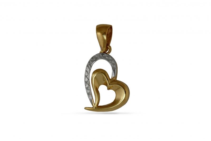Златен медальон - Вплетени сърца. Ръчна изработка от жълто и бяло 14 каратово злато, проба 585. Грамаж ок. 1.16 грама.