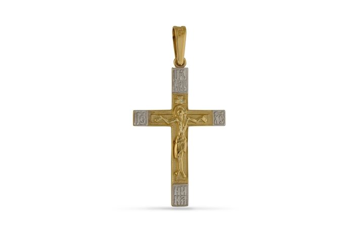 Златен кръст, ръчна изработка от бяло и жълто 14 каратово злато, проба 585. Грамаж ок. 2.30 грама. При покупка получавате кръстчето със сертификат и гаранция от магазин. При изчерпване, срак за изработка 10 работни дни. кул. Произведено в България.