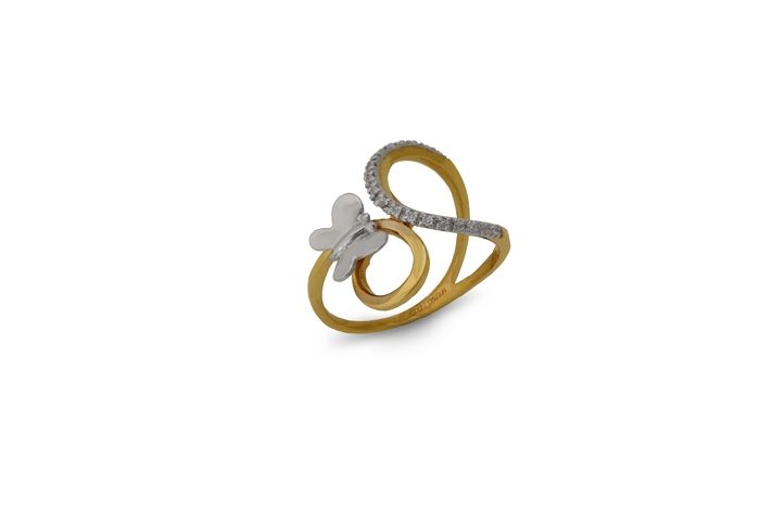 Златен пръстен - Пеперуда, ръчна изработка от бяло и жълто 14 каратово злато, проба 585. Грамаж ок. 2.62 грама. При покупка получавате пръстена със сертификат и гаранция от магазин. При изчерпване, срак за изработка 10 работни дни. кул. 2700. Произведено в България.
