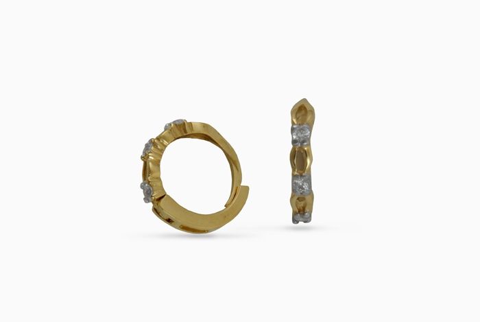 Златни обеци с вградени цирконии. Ръчна изработка от бяло и жълто 14 каратово злато, проба 585. Грамаж ок.1.71 грама. При покупка получавате обеците със сертификат и гаранция от магазин. При изчерпване, срок за изработка 10 работни дни. кул. 2840. Произведено в България.