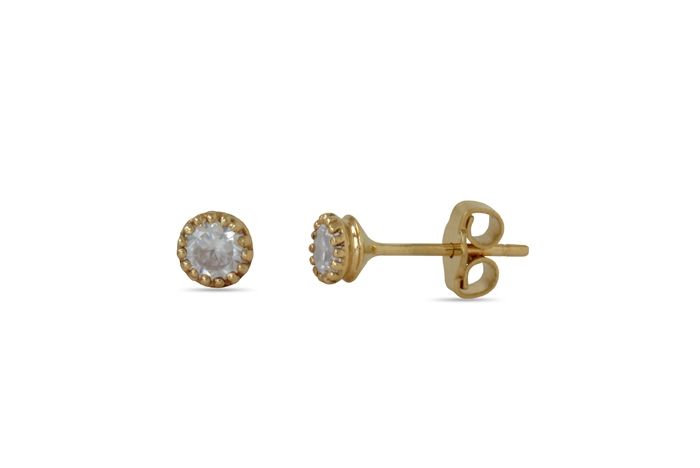 Златни обеци с вградени цирконии. Ръчна изработка от жълто 14 каратово злато, проба 585. Грамаж ок.1.38 грама. При покупка получавате обеците със сертификат и гаранция от магазин. При изчерпване, срок за изработка 10 работни дни. кул. 2917. Произведено в България.