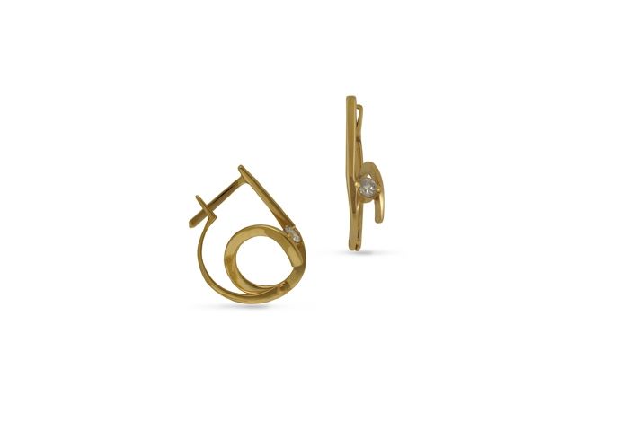 Златни обеци с вградени цирконии. Ръчна изработка от жълто 14 каратово злато, проба 585. Грамаж ок.2.56 грама. При покупка получавате обеците със сертификат и гаранция от магазин. При изчерпване, срок за изработка 10 работни дни. кул. 3105. Произведено в България.