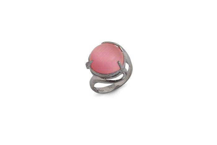 Ръчно изработен сребърен пръстен с вграден розов кварц.